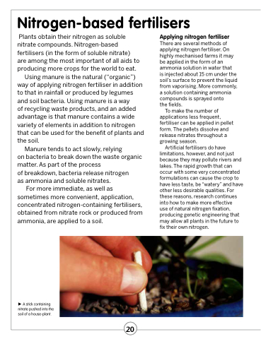 For more immediate, as well as sometimes more convenient, application, concentrated nitrogen-containing fertilisers, obtained from nitrate rock or produced from ammonia, are applied to a soil.