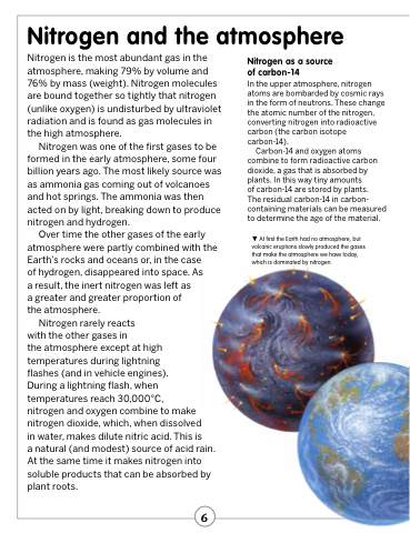 Nitrogen was one of the first gases to be formed in the early atmosphere, some four billion years ago. The most likely source was as ammonia gas coming out of volcanoes and hot springs. The ammonia was then acted on by light, breaking down to produce nitrogen and hydrogen.