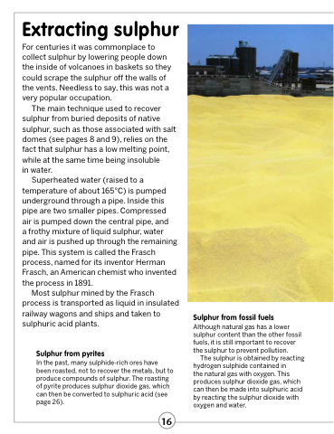 The main technique used to recover sulphur from buried deposits of native sulphur, such as those associated with salt domes (see pages 8 and 9), relies on the fact that sulphur has a low melting point, while at the same time being insoluble