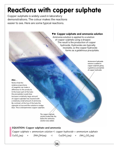 Copper sulphate and ammonia solution Ammonia solution is applied to a solution