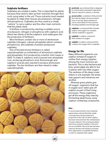 of potassium, nitrogen or phosphorus with sulphuric acid. About two-thirds of all the sulphuric acid made goes into the production of fertilisers.