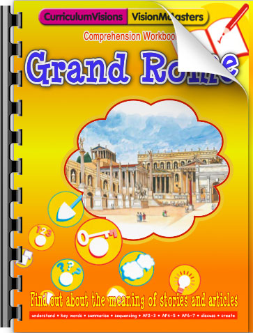 Click on an icon to bring up a PDF reading comprehension workbook for printing or whiteboard use. Each workbook contains a short story followed by comprehension questions to test skills such as retrieve and record, sequencing, vocabulary, and more.