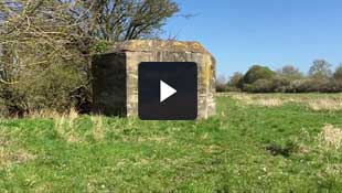 Shows the inside and outside of a WW2 pillbox guarding a route near a river. Pillboxes are reinforced