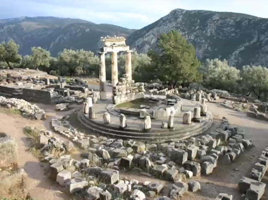 The Tholos, Delphi. In Greece, the Tholos is a round temple of Greek 'peripteral' design completely encircled by a colonnade. A famous Tholos can be seen in Delphi, the Tholos of Delphi. It has been dated to 370-360 BC.