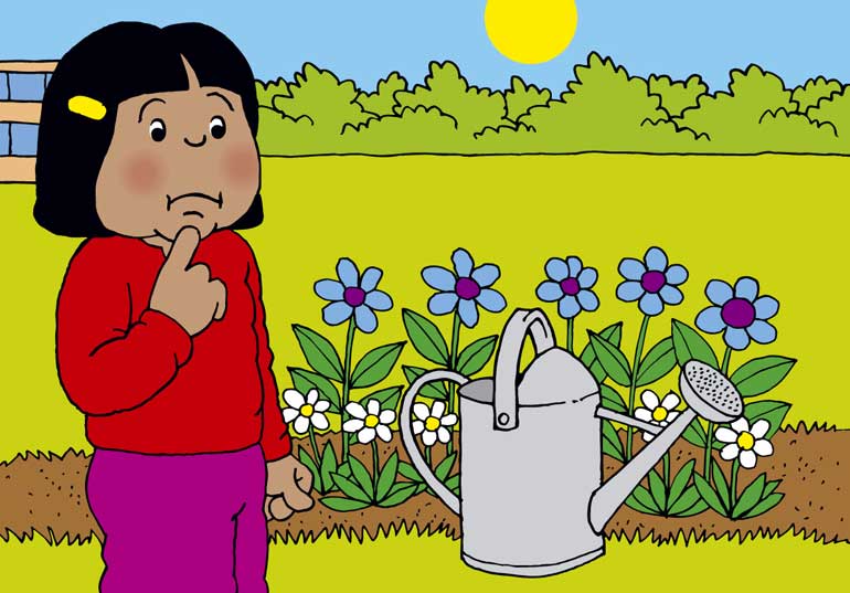 Basma and her friends normally water the plants when there is a dry spell.