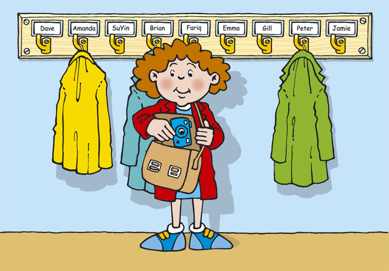 Inside the bag she has brought a camera from home.