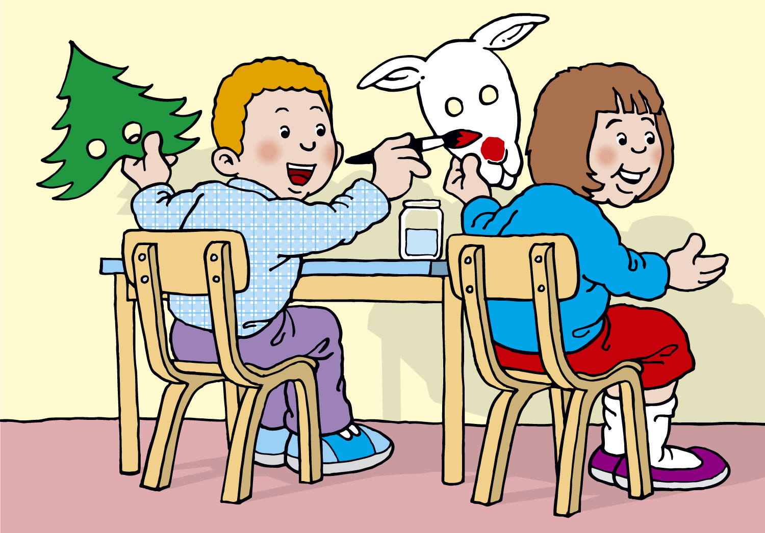 Sam's class are making masks. Some are making tree masks, other sheep masks.