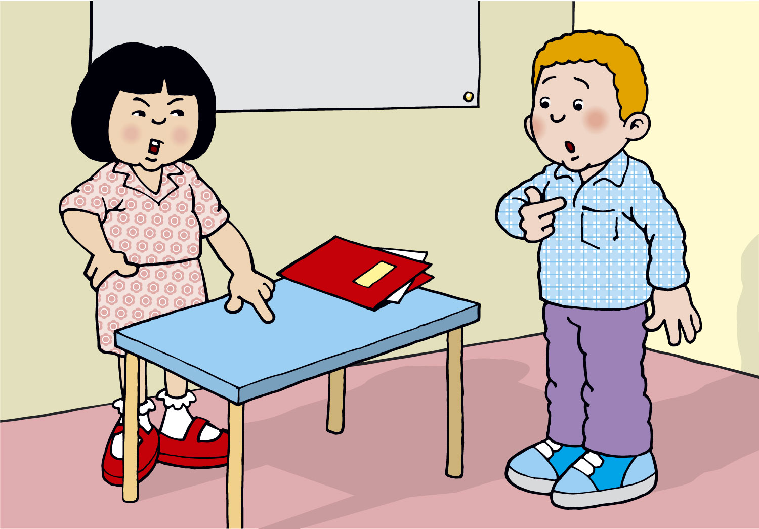 Su Yin has written out her lines and has put them proudly on her desk.
