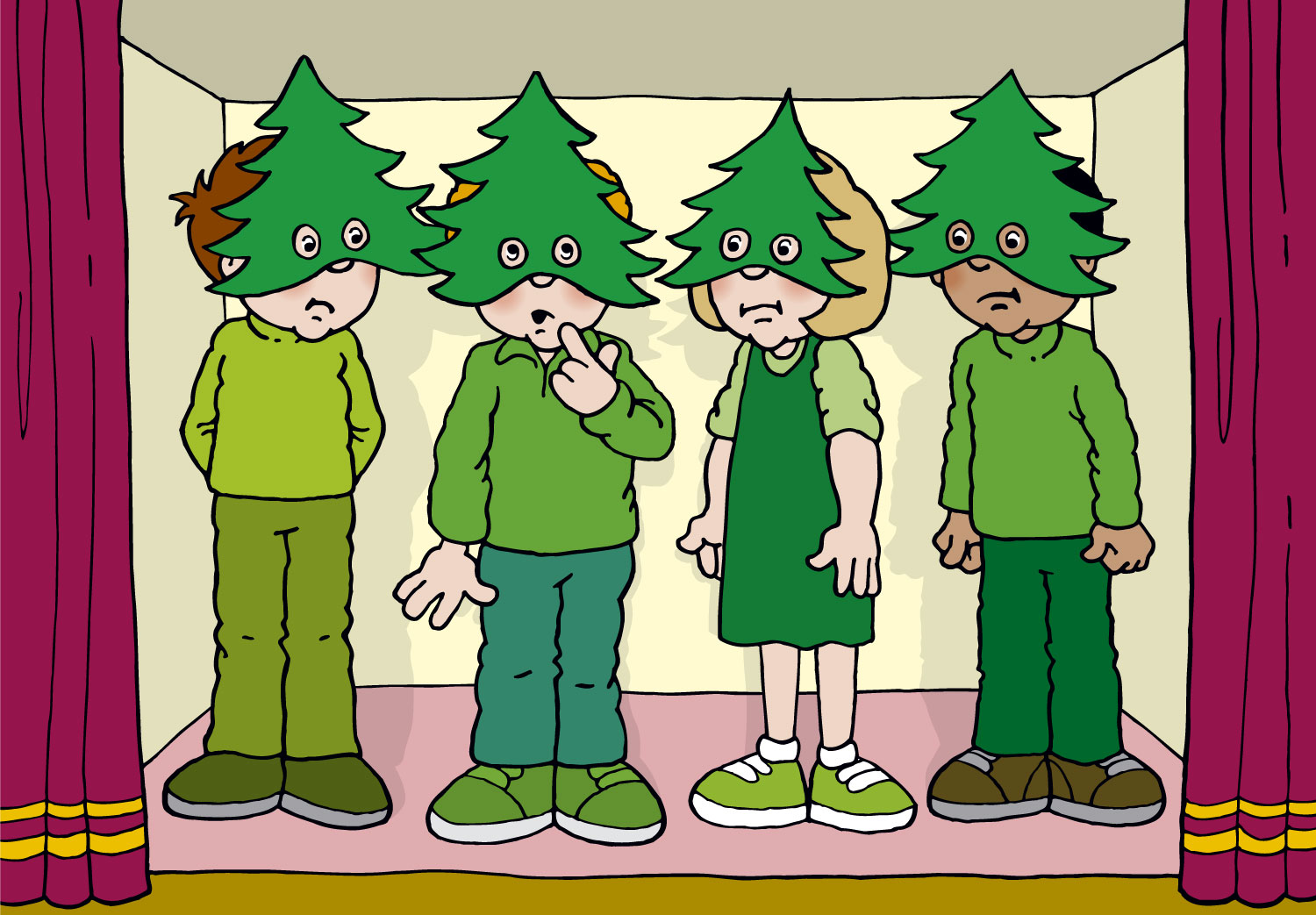 Sam, as chief tree, has to speak an important part, but when the time comes, he forgets his words.
