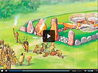 This is a reconstruction of a chieftain's burial site on a ridgetop. There is also footage from an actual burial site at Wayland Smithy.