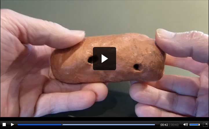 A replica of a decorated clay oil lamp like the ones Romans used to light their homes