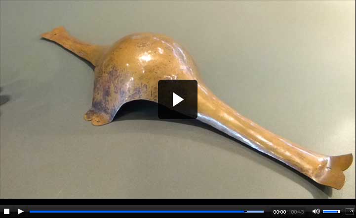 Replica metal boss that would have been in the middle of a Bronze Age shield.