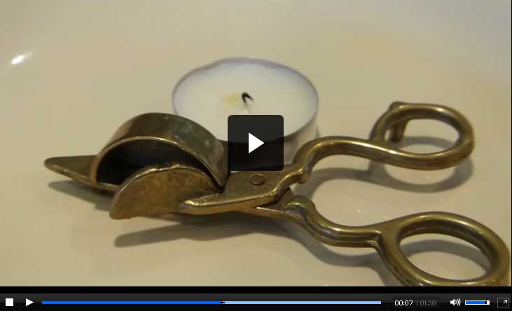 A tool used to trim candle wicks to stop them burning too quickly, and to put out the candle flame.