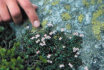 The weather on a mountain is very different from that in a valley. Near the top of the mountain it may be very cold for much of the year. The ground may be covered with snow and the soil will be frozen. Not only are winters long, but summers are short and cool. Alpine plants must be adapted to survive these difficult conditions.