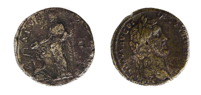 A Roman coin showing the face of Emperor Antoninus Pius. Roman emperors used coins a lot to show people the power that they had, and make sure everyone knew them.