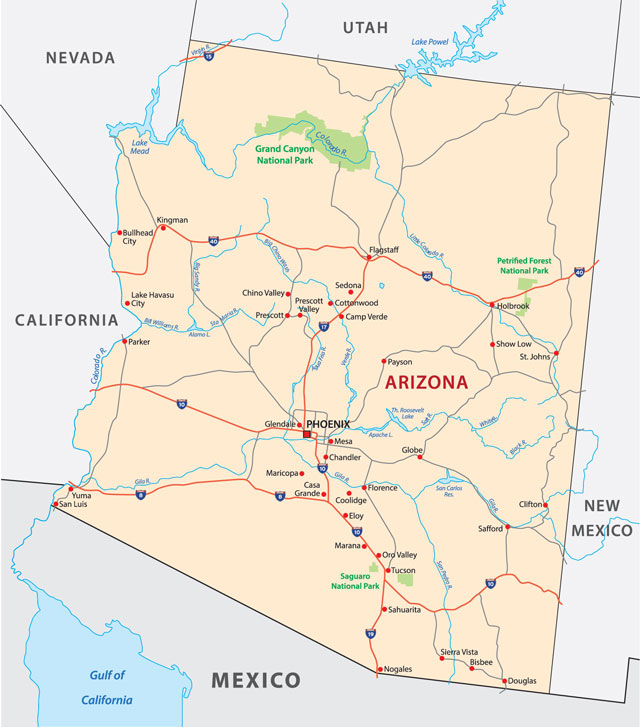 The mountains of Arizona are rich in minerals, especially copper, and mining has been a foundation of the wealth of the state. But there was farming, too, and cotton was widespread. These were both severely effected by the Great Depression in the 1920s and 30s. Today farming is still important, but using modern irrigation methods.