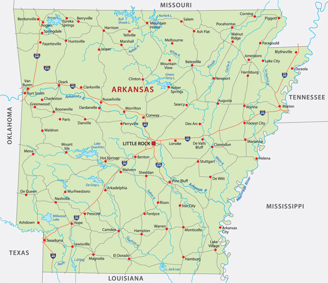 Arkansas is the 29th largest and the 32nd most populous of the 50 United States. It prides itself on its natural landscapes and does not have any very large cities. The capital is Little Rock.