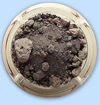 When the volcano Mt. St. Helens erupted in 1980, it threw all kinds of sizes of ash into the air. Later on, some enterprising people heated some of the ash (which is the same material as makes glass), and moulded ash trays from it! That is what you can see here.