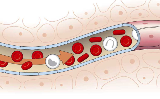 Blood cells soak up oxygen as they pass through the lungs. Blood cells then carry oxygen to the body. Waste carbon dioxide is not carried by cells, but dissolves in the plasma. It seeps out when it reaches the lungs.