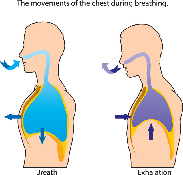 Then we breathe out (exhale) by bringing the diaphragm up and pulling the chest bones in. This pushes the air out ready for the cycle to begin all over again.