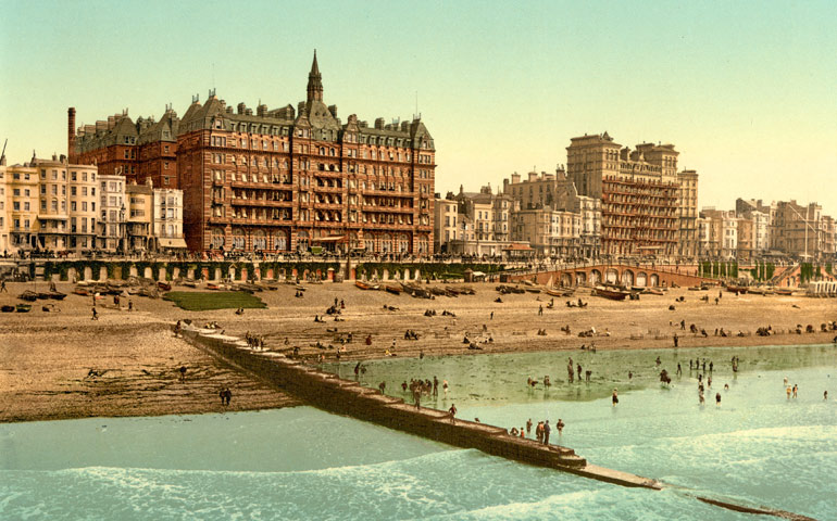 So, by 1780, many fine Georgian terraces had been built. It was, of course, still not easy to get to Brighton, for the railway had not yet been invented. But it was far easier to reach than many other places. For those who did not build a house on the seafront, great hotels were built, something that started in the 1820s and went on through Victorian times.