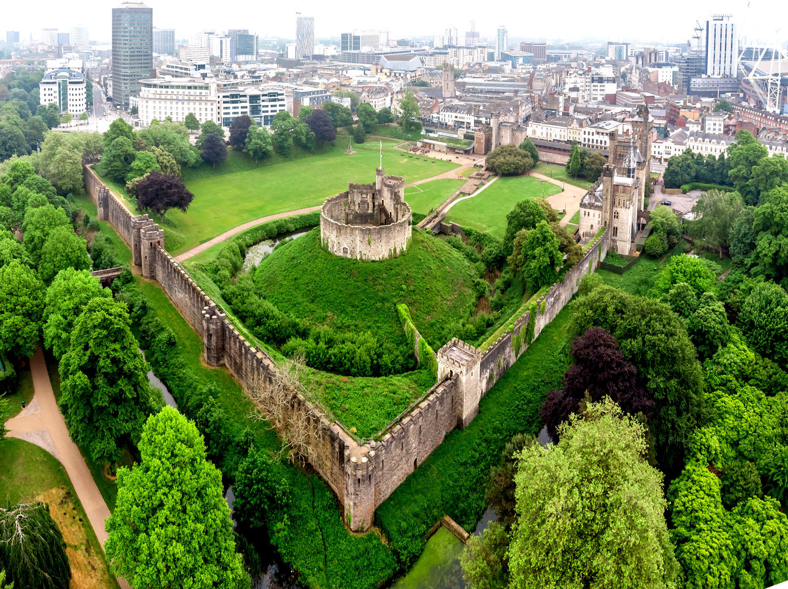 After the Romans left, the site of Cardiff was probably abandoned. But its importance as a defensive site was not lost on King William the Conqueror, the first of the Normans. He brought the idea of fort building back to Britain, and instructed that a simple fortified motte and bailey castle be built in 1081. That motte, with its keep on top, is still the core of Cardiff Castle, and the major landmark of Cardiff. You can even find traces of the Roman fort in the walls of the castle, although much of what you see today is the result of alterations in Victorian times.