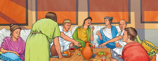 Ancient Romans, who copied the Greek clothing, wearing them at a dinner function.