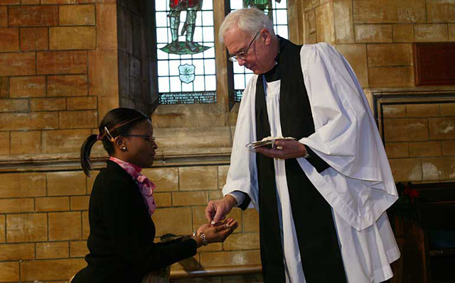 The Holy communion, or Eucharist, is reenacted in accordance with Jesus' instruction at the Last Supper that His followers do in remembrance of Him as when He gave His disciples bread, saying, "This is my body", and gave them wine saying, "This is my blood."
