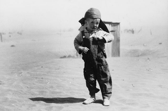 During the drought of the 1930s, the exposed soil turned to dust, which the prevailing winds blew away in huge clouds that sometimes blackened the sky. They were called "black blizzards" and "black rollers". The video below shows you much more.