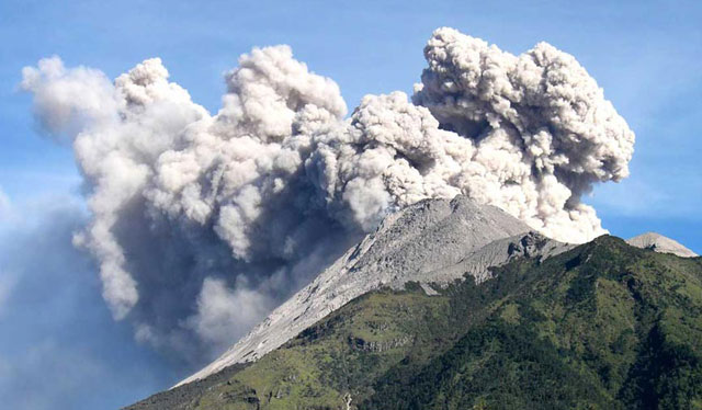 Volcanoes that explode violently usually have tall cones. This is because the materials they send up into the air fall down around the cone and build it higher.