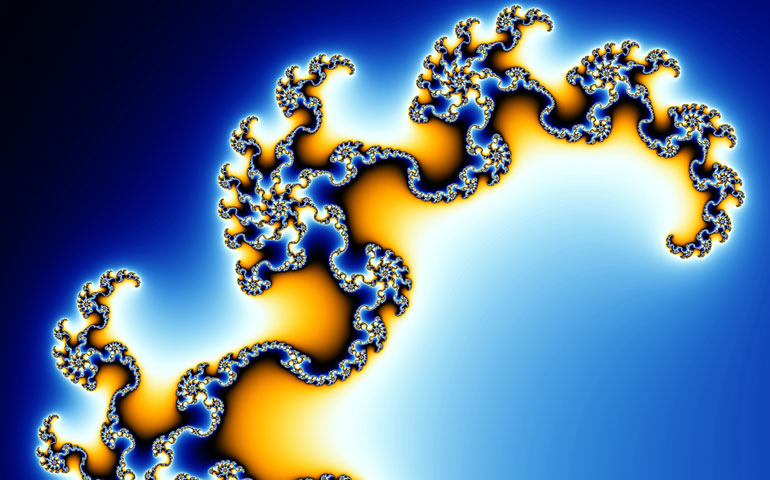 A fractal is a pattern produced by repeating a mathematical formula. It produces spectacular animations. Look at the video below. WARNING: the video contains flashing images.