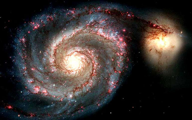 Nearby, there are 20 large galaxies that together make a cluster. The largest and most prominent of these is called the Andromeda Galaxy, more than 2 million light years away. What we see of this galaxy in the sky is, therefore, what it looked like 2 million years ago!