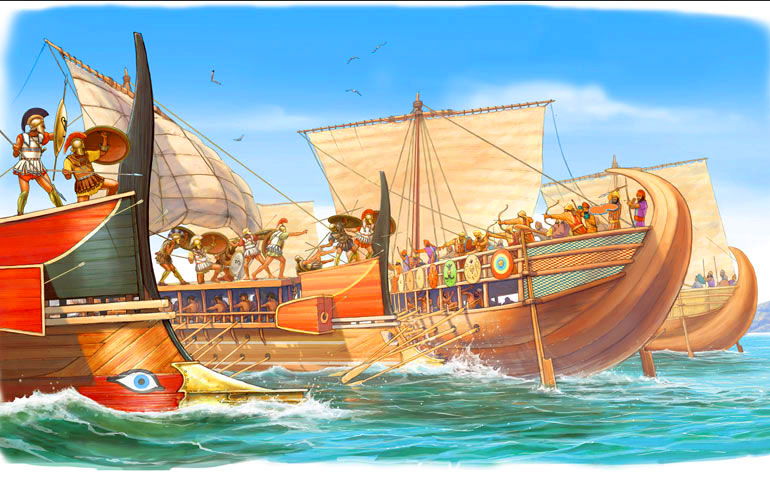 Galleys being used by the Ancient Greeks at the Battle of Salamis.