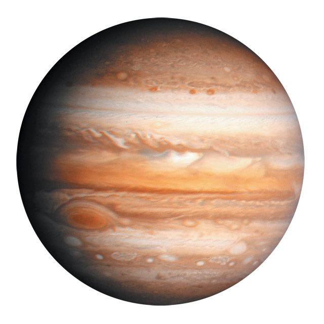 The gas planets have moons around them and their surfaces are always on the move. The most famous of these planets with moving atmospheres is Jupiter, where the main feature is the spinning area of gas called the Great Red Spot.