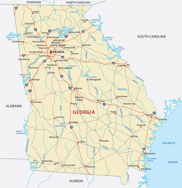 Georgia's highest point is Brasstown Bald - 4,784ft (1,458m). All of the state, except for the Blue Ridge Mountains, has a humid subtropical climate.