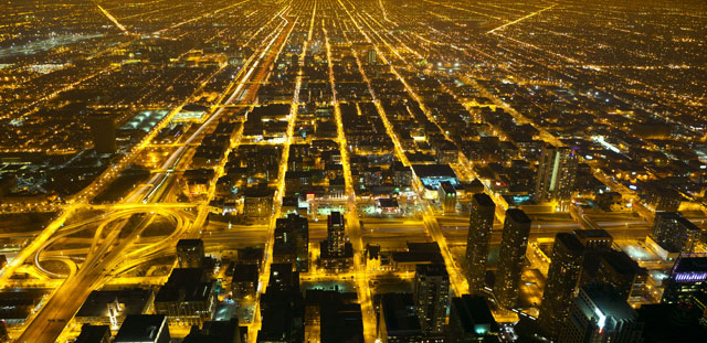 Gridiron pattern of streets in Chicago.