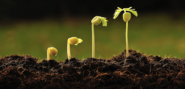 When plants grow, their seeds first soak up moisture and swell. Then a root comes out of the seed and goes into the soil. Then a shoot goes up into the air and leaves appear. These are the early, and most dramatic, changes in plants growing.