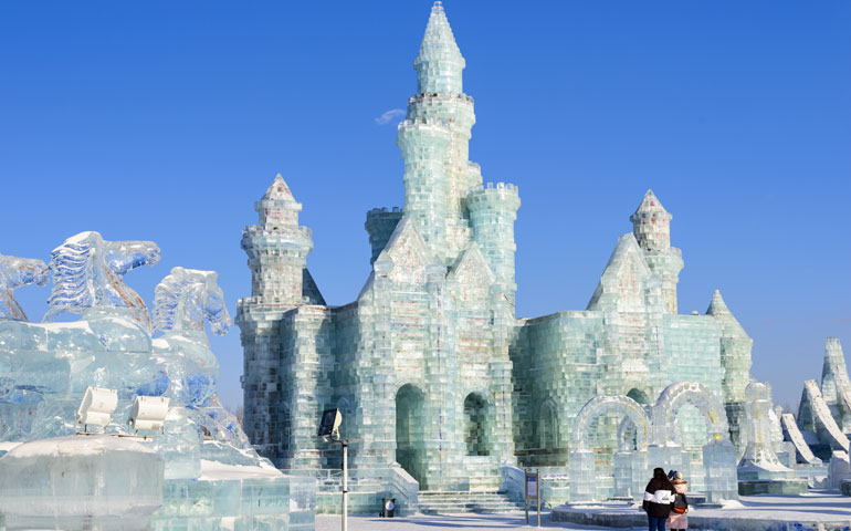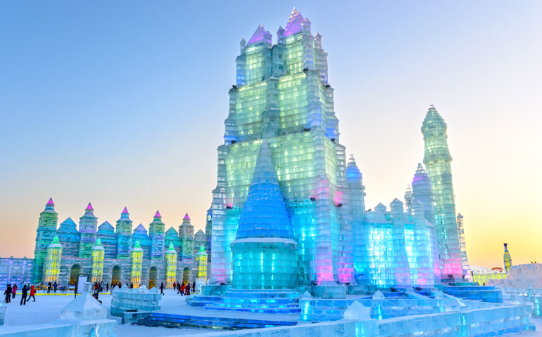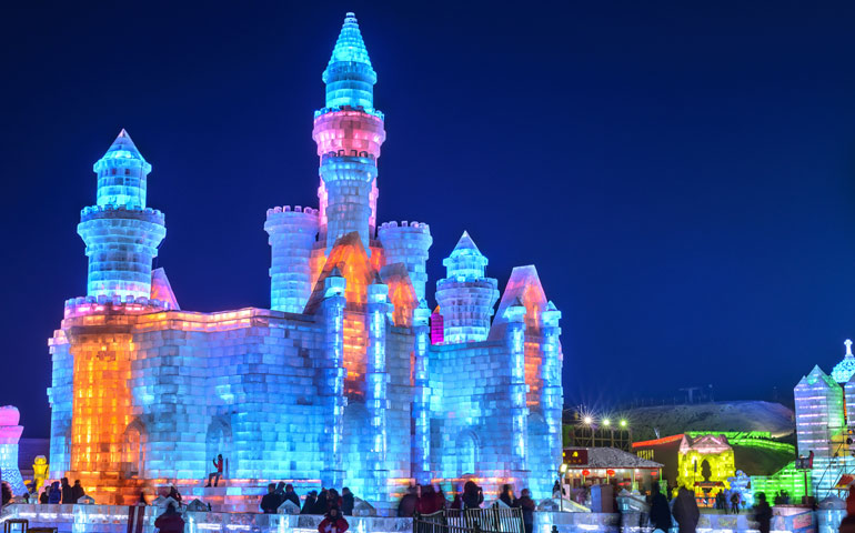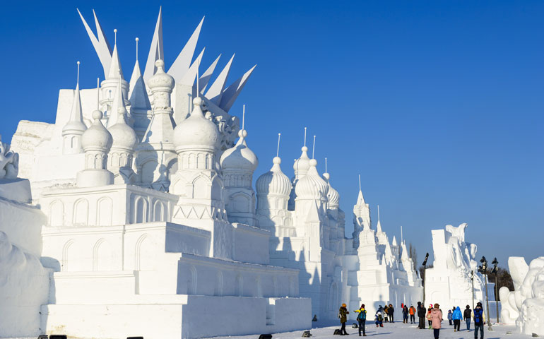 The festival begins on January 5 and lasts for a month. There are two main areas: Sun Island, which is where there are the most enormous snow sculptures; and Ice and Snow World, which is also open at night and which has illuminated full size buildings made from blocks of 2–3ft thick ice taken directly from the Songhua River.