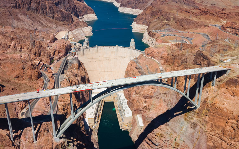 Dam length 379m; dam height 221m; Lake Mead surface area 640sq km; power generation 2078MW.