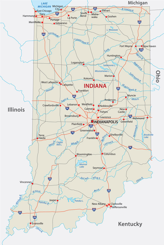 The smallest state west of the Appalachian Mountains, Indiana has three main land regions; the Great Lakes Plains in the north, the Till Plains in central Indiana, and the Southern Plains and Lowlands in the south.