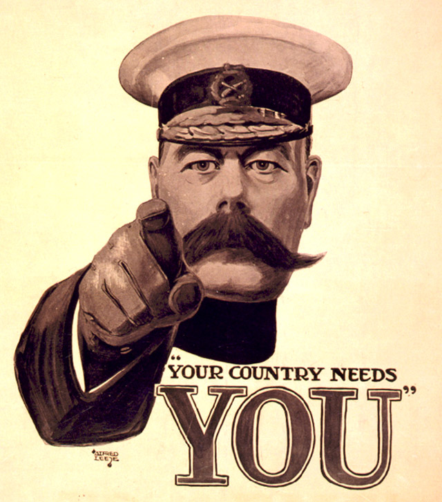 There needed to be massive advertising for this, and because he was famous and trusted, it was his face that appeared on the posters asking for volunteers. "Your country needs you!", is one of the most famous posters ever produced in the world.
