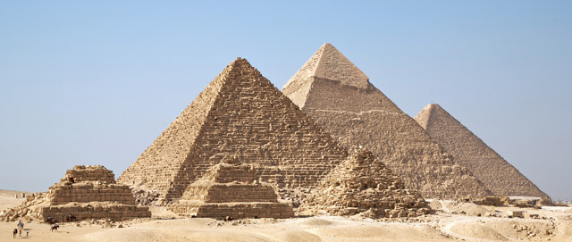 The bottom sixteen courses of blocks are made of granite brought down the Nile from Aswan. The rest were hewn from a local limestone quarry.