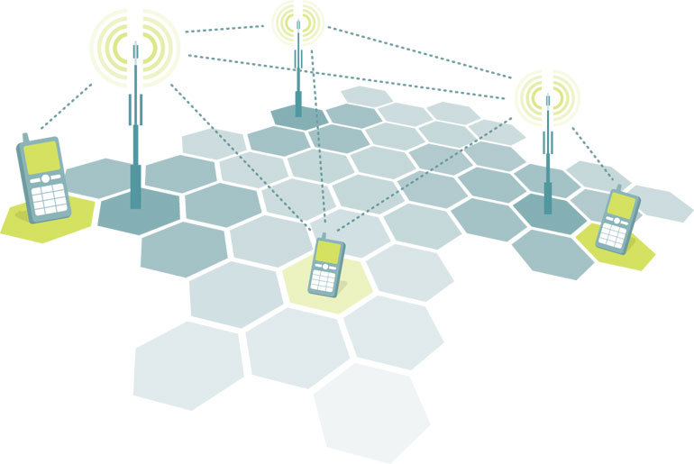 If you have a portable phone that you can carry around with you away from your home, then you have a mobile phone - also called a cell phone - connected to a wireless network. The reason it is called a cell phone network is that the transmission/reception masts communicate only over the cell that they are in. These transmitter/receivers are known as base stations. Each cell uses a different set of frequencies from neighbouring cells, so that each base station knows which its mobile devices are.