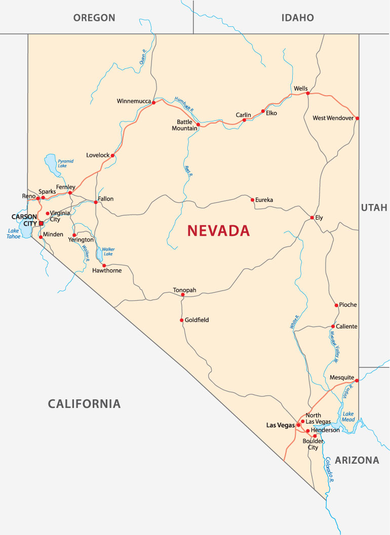 Nevada is a state in the Western United States. Nearly three-quarters of Nevada's people live in Clark County, which contains the Las Vegas–Paradise metropolitan area. Nevada's capital is the modestly-sized Carson City.