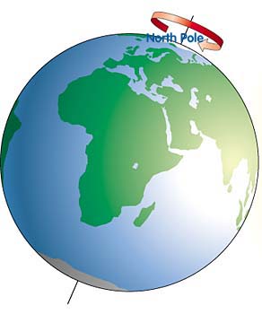 The North Pole is the most northerly point of the rotating globe. The South Pole is the most southerly point of the rotating globe.