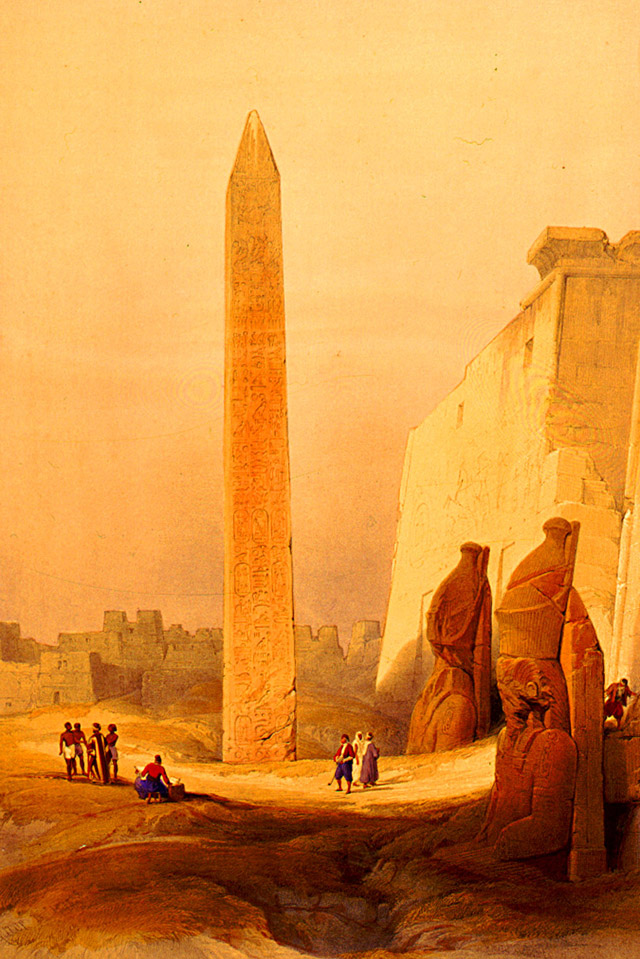 An obelisk is a tall, pointed monument with sacred writing on it. It was developed in the New Kingdom of Ancient Egypt, first by Queen Hatshepsut.