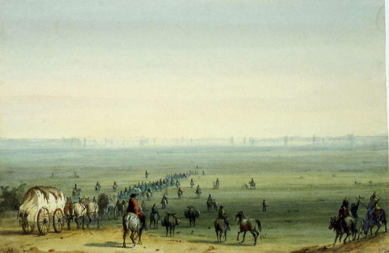 By mid-April, the prairie outside each jumping off town was packed with pioneers. But they were going nowhere. Once the winter snows have melted, it takes some weeks for the prairie grasses to grow again, and until there was sufficient food for the animals, the pioneers dare not move. The wagons could not carry feed for all the livestock they were bringing. People were really on their own.