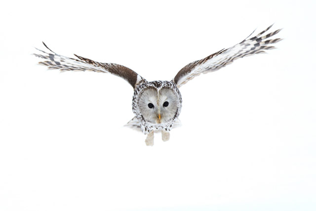 An owl is adapted for feeding on small mammals at night. They have large eyes to see in the dark. They also have special feathers that help them to fly almost silently and so catch their prey by surprise. It has talons or claws on its feet for catching its prey while flying.
