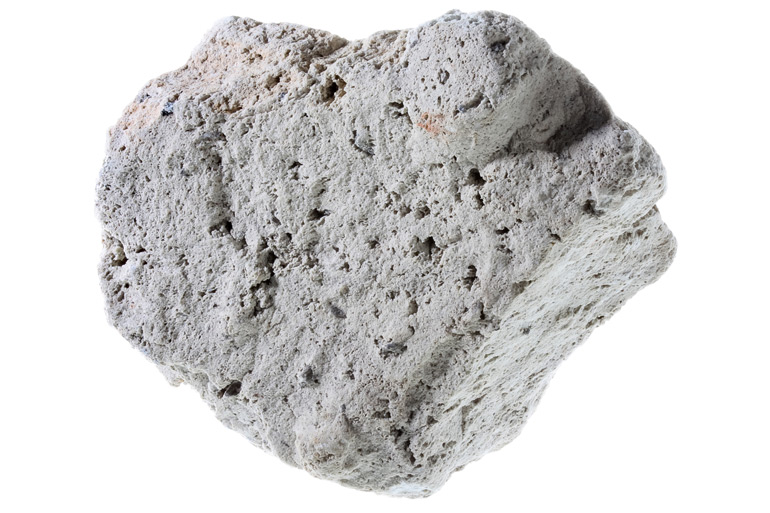 Pumice is a volcanic rock that consists of volcanic glass and air bubbles. It is usually light grey.