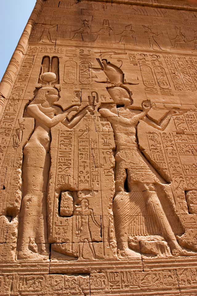 Queen Cleopatra with her son at the temple of Dendara, Egypt.
